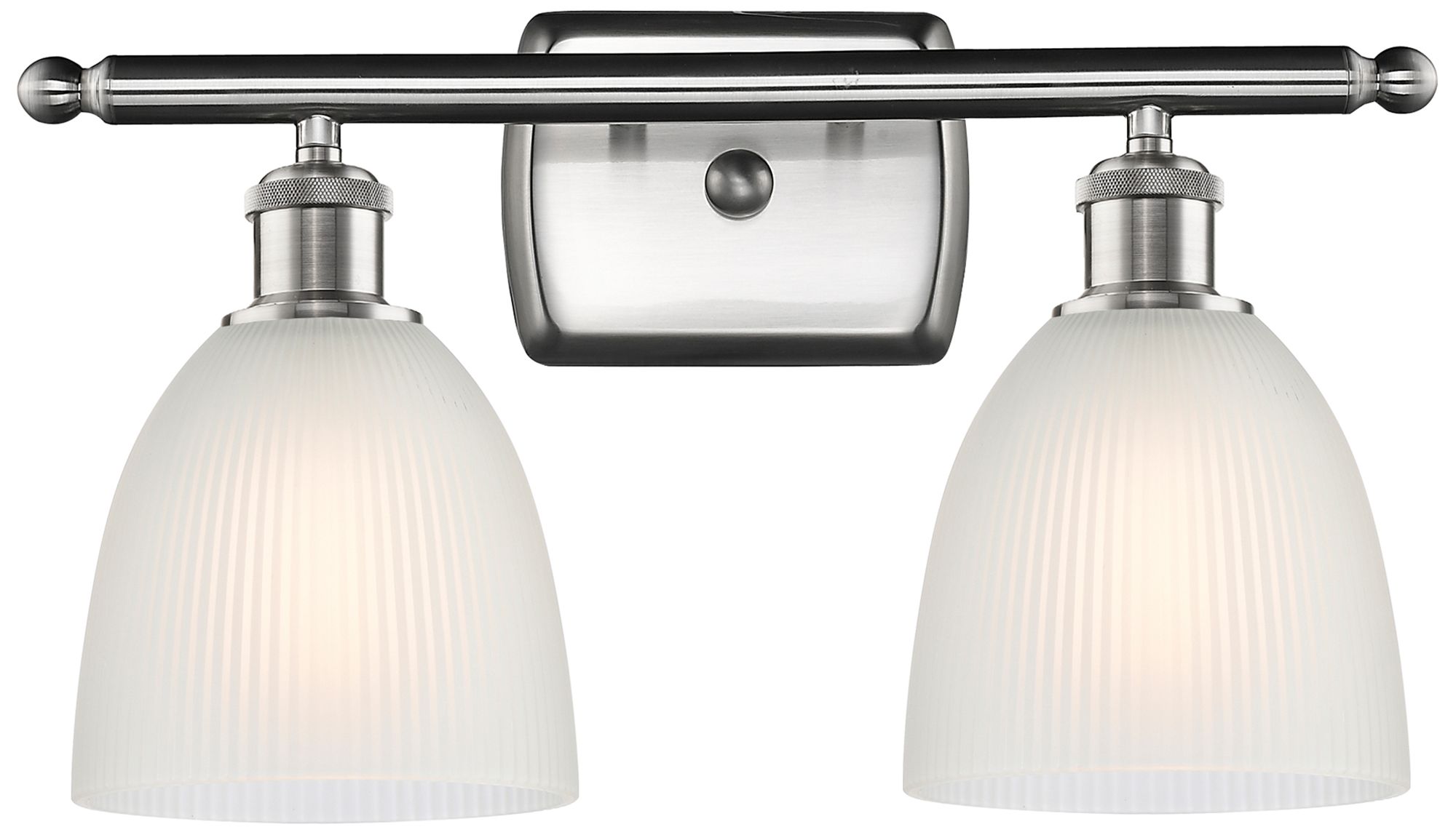 Castile 16"W 2 Light Brushed Satin Nickel Bath Vanity Light w/ White S