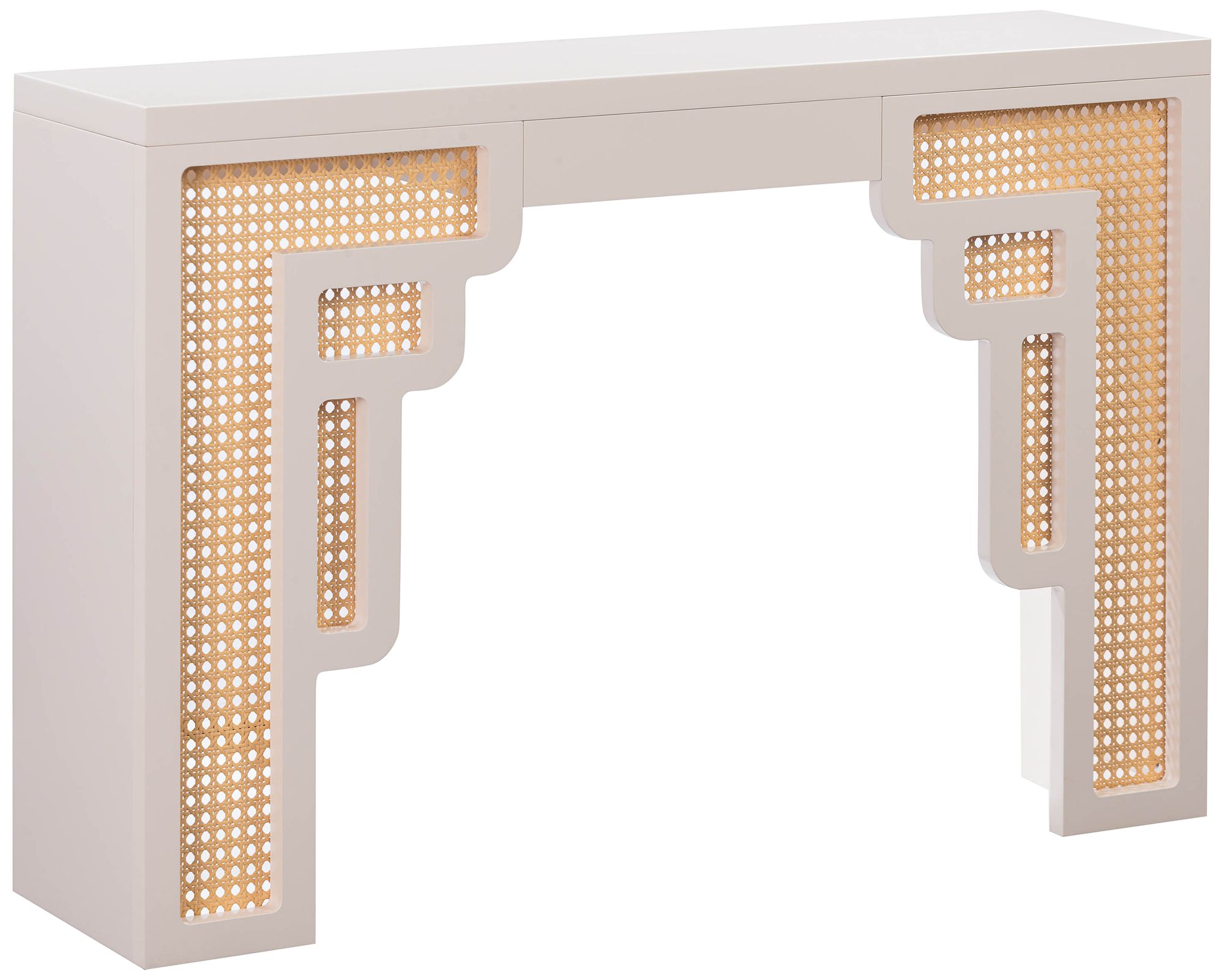 TOV Suzie 45" Wide Cream Wood Woven Rattan Console Table