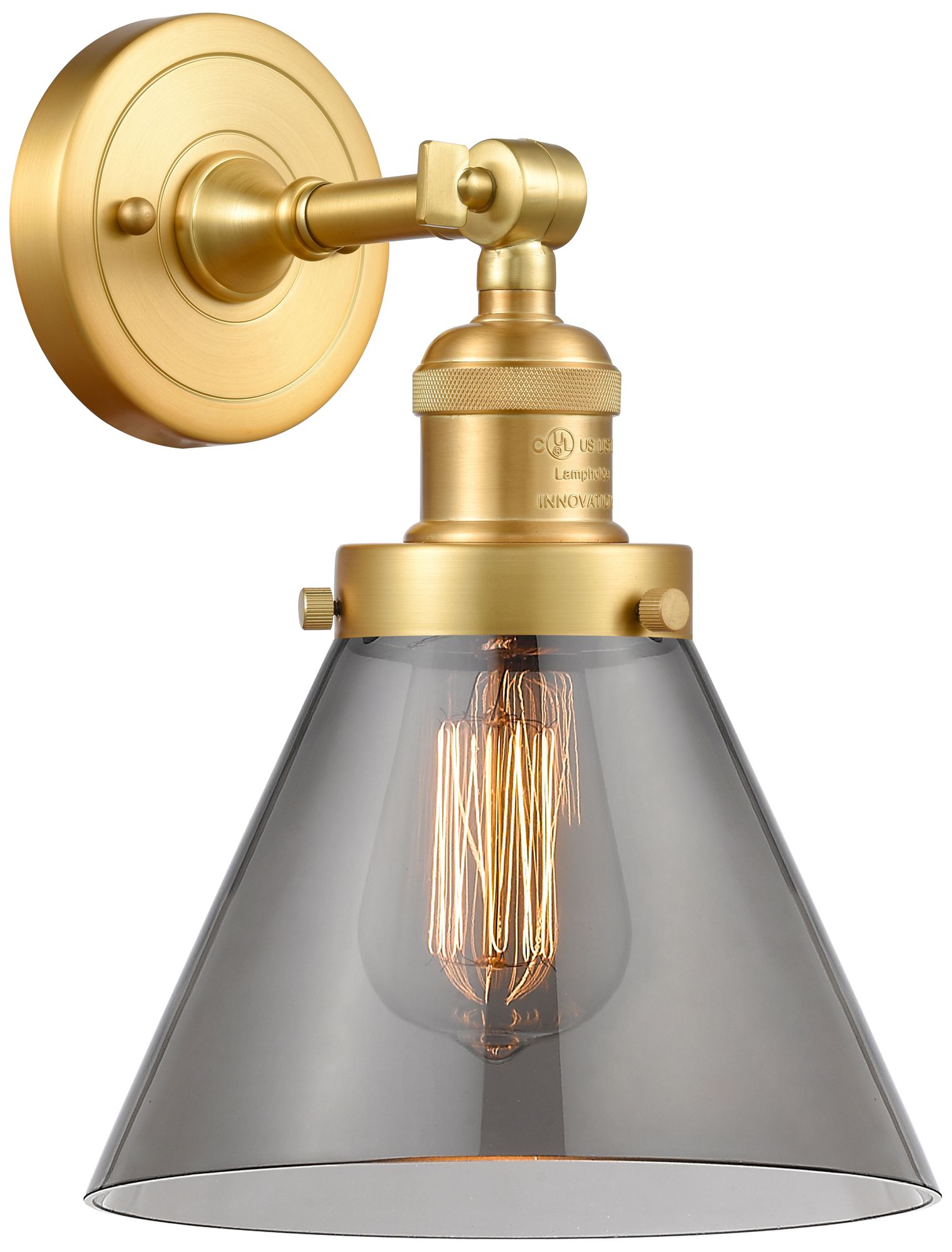 Franklin Restoration Large Cone 8" Satin Gold Sconce w/ Plated Smoke S