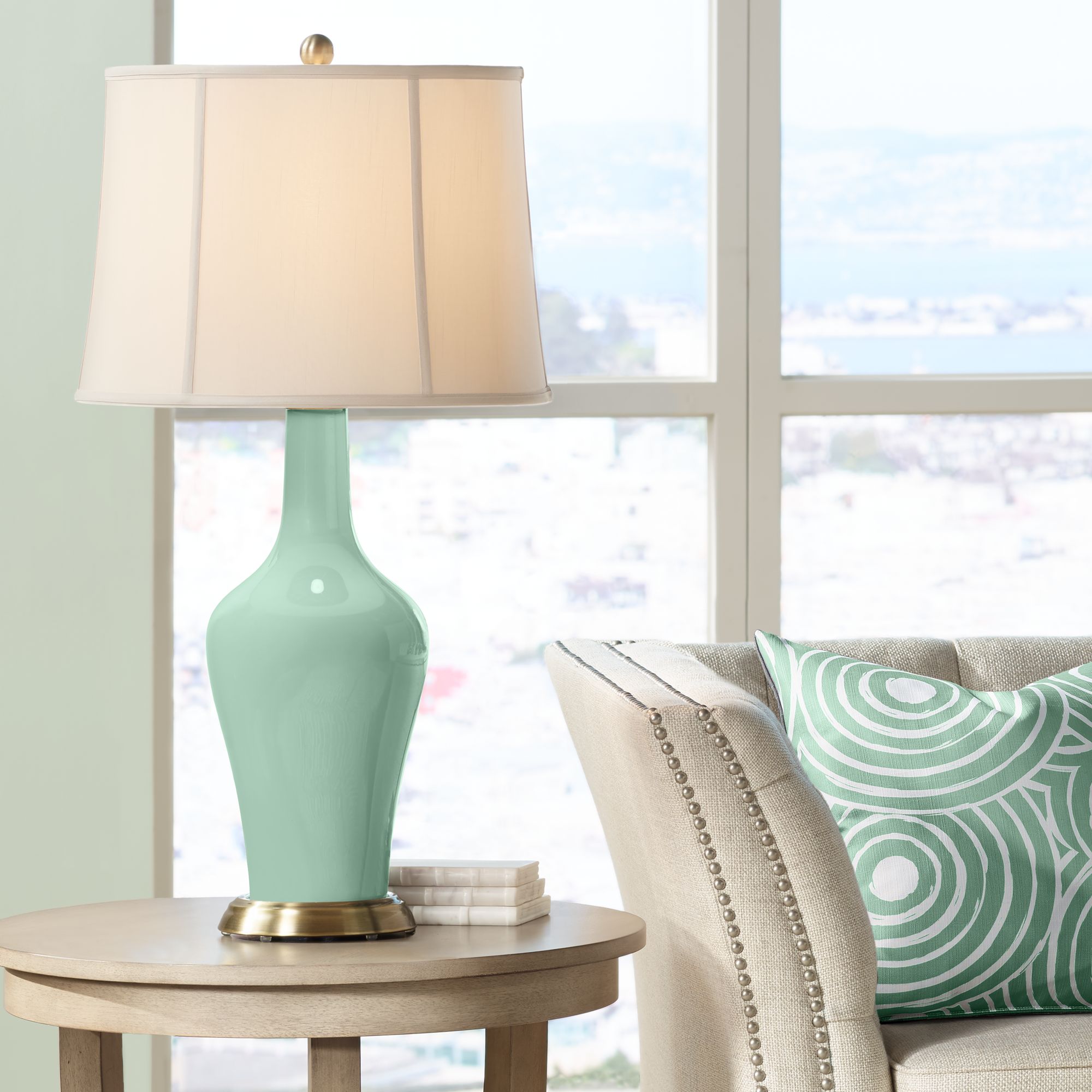 Color Plus Anya 32 1/4" High Grayed Jade Green Glass Table Lamp