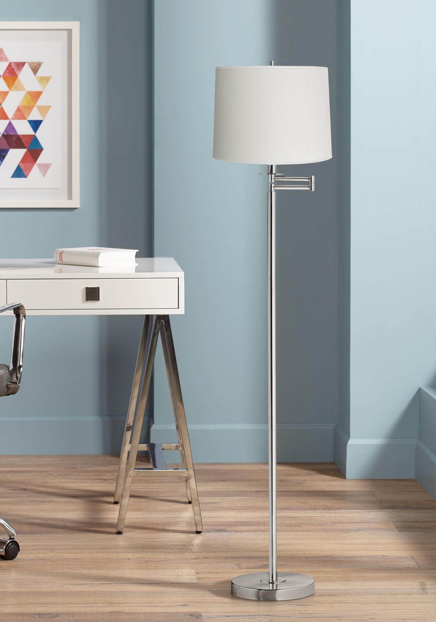 360 Lighting 60 1/2" White Drum Brushed Nickel Swing Arm Floor Lamp