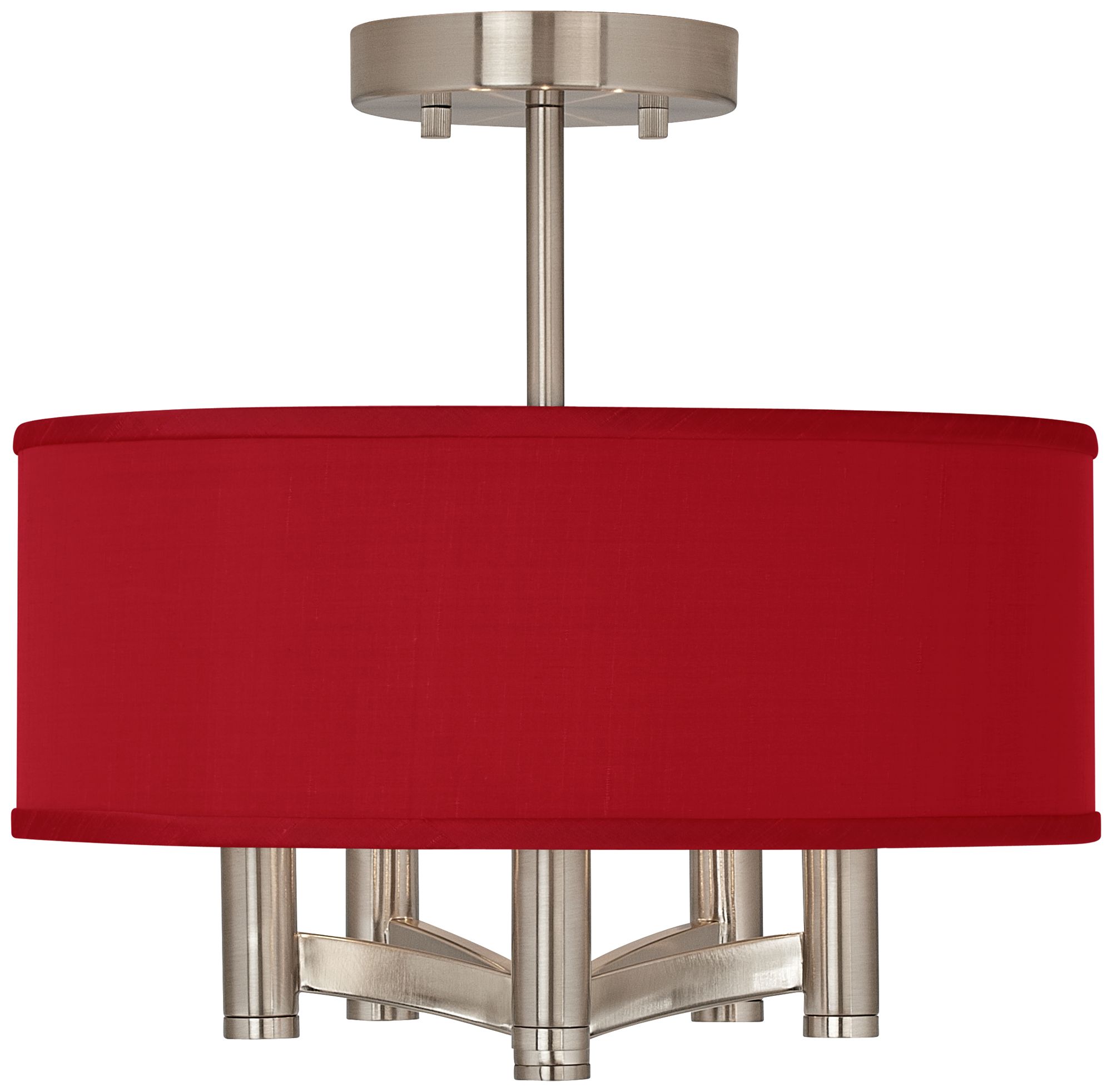 Possini Euro Ava 14" Wide Red Faux Silk 5-Light Nickel Ceiling Light