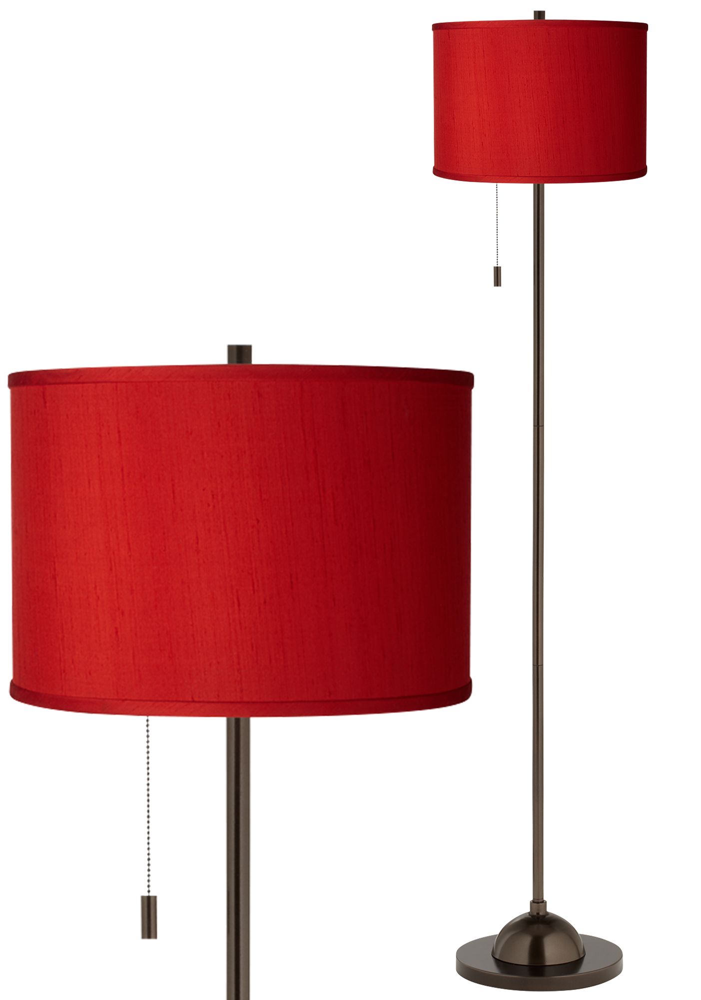 Possini Euro 62" Red Textured Faux Silk Bronze Club Floor Lamp