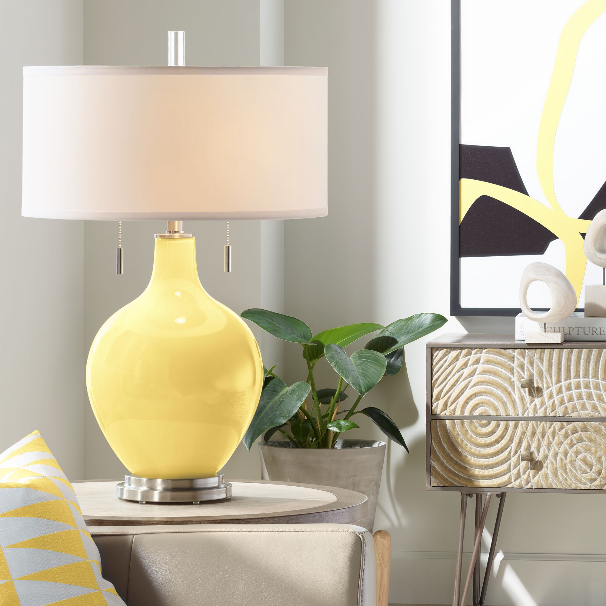 Color Plus Toby Nickel 28" Modern Daffodil Yellow Glass Table Lamp