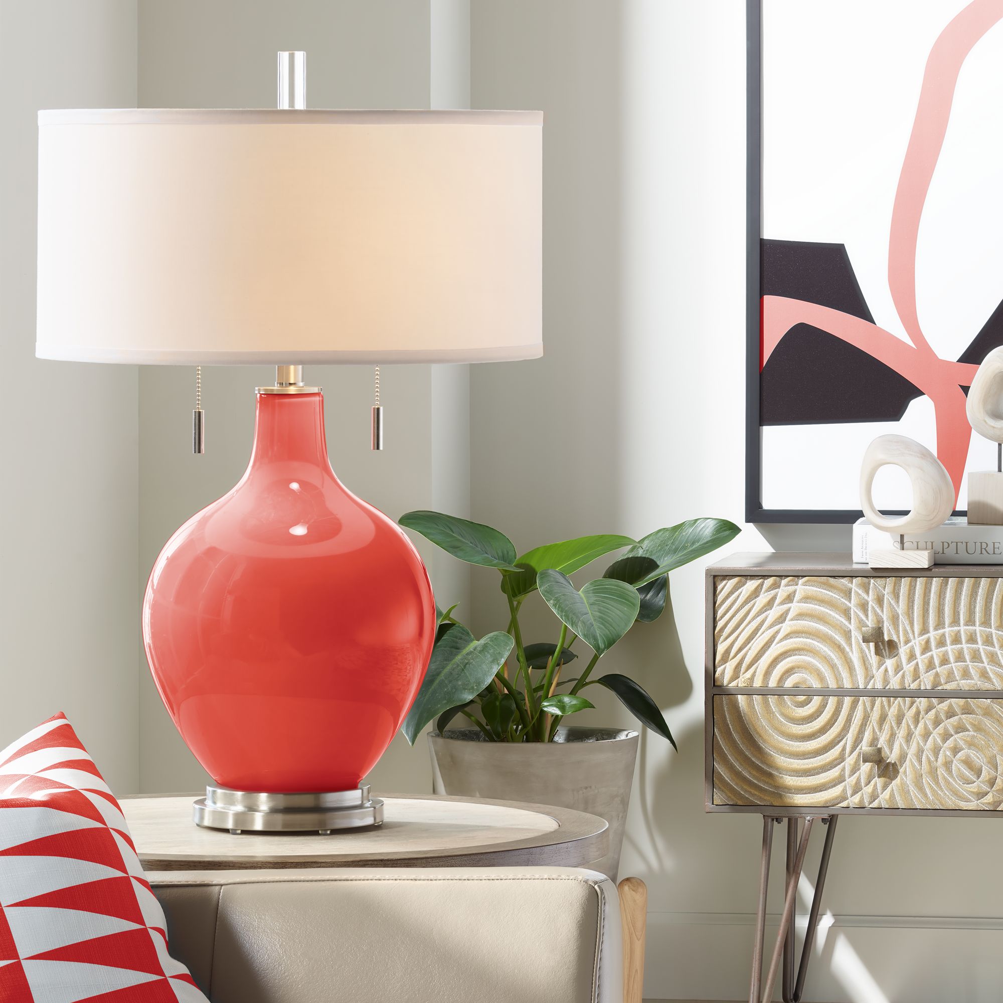 Color Plus Toby Nickel 28" Cherry Tomato Red Table Lamp