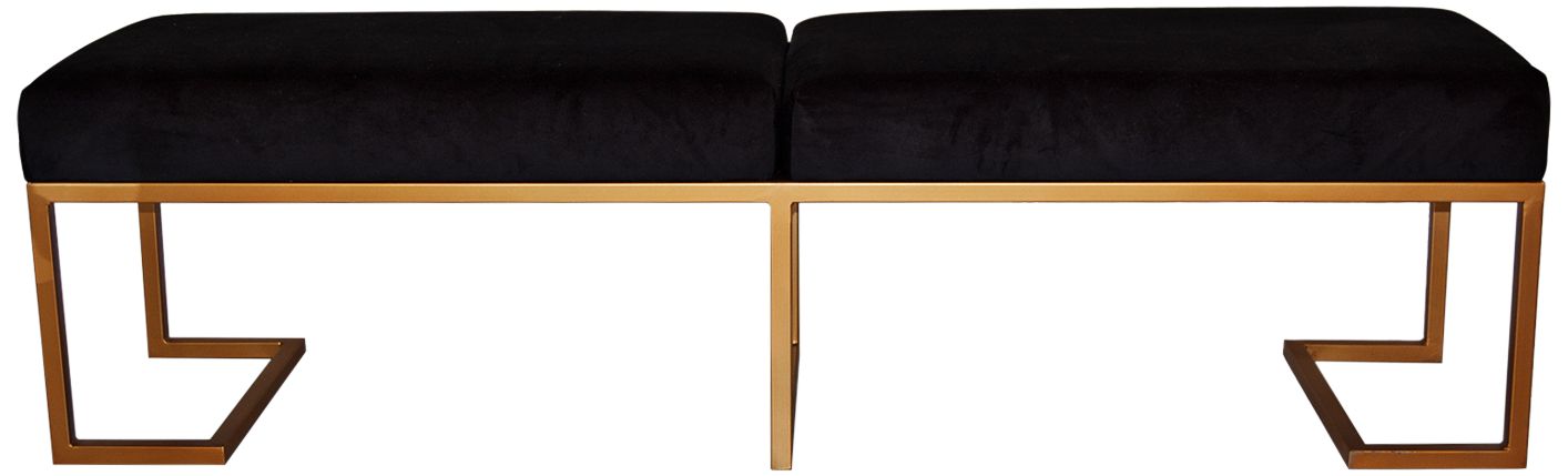 Ella 70" Wide Black Velvet 2-Seat Modern Glam Bench