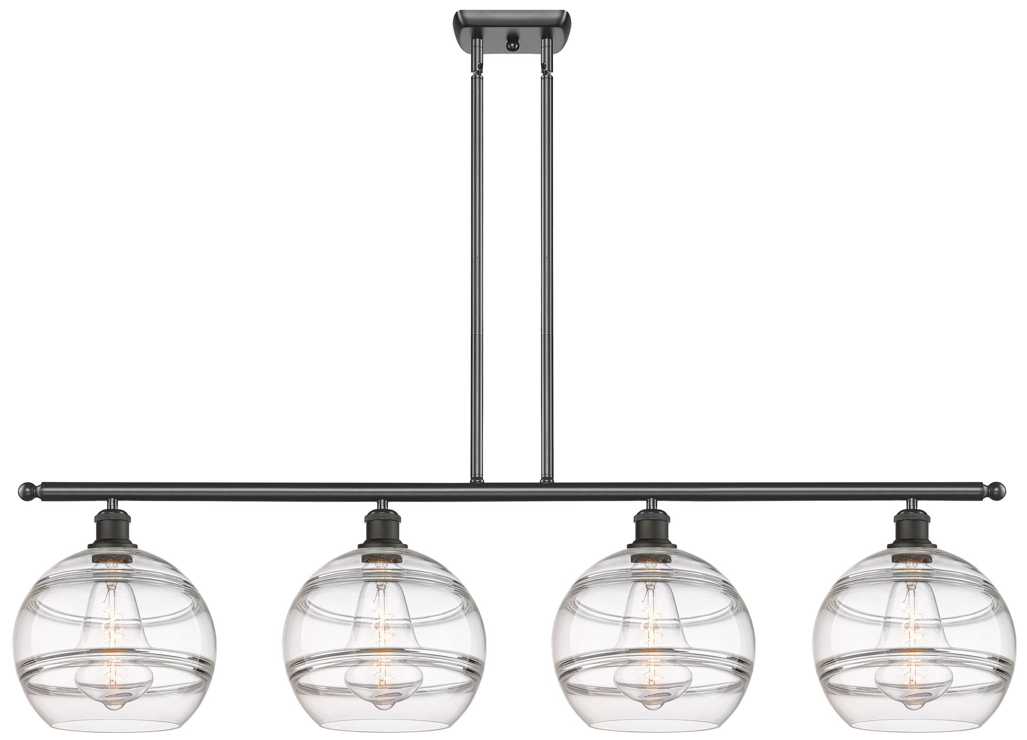 Rochester 48.25"W 4-Light Oiled Bronze Stem Island Light w/ Clear Shad