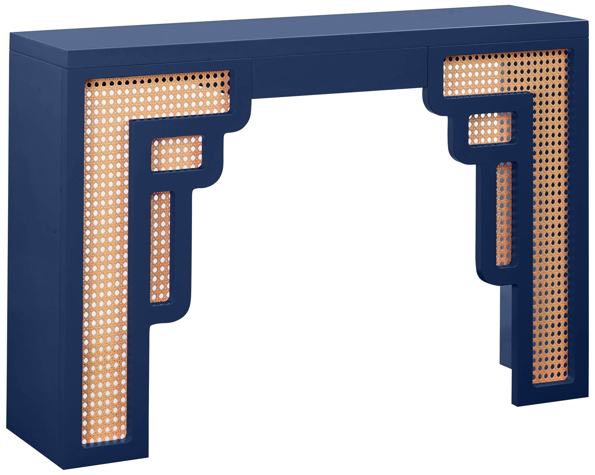 TOV Suzie 45" Wide Navy Wood Woven Rattan Console Table