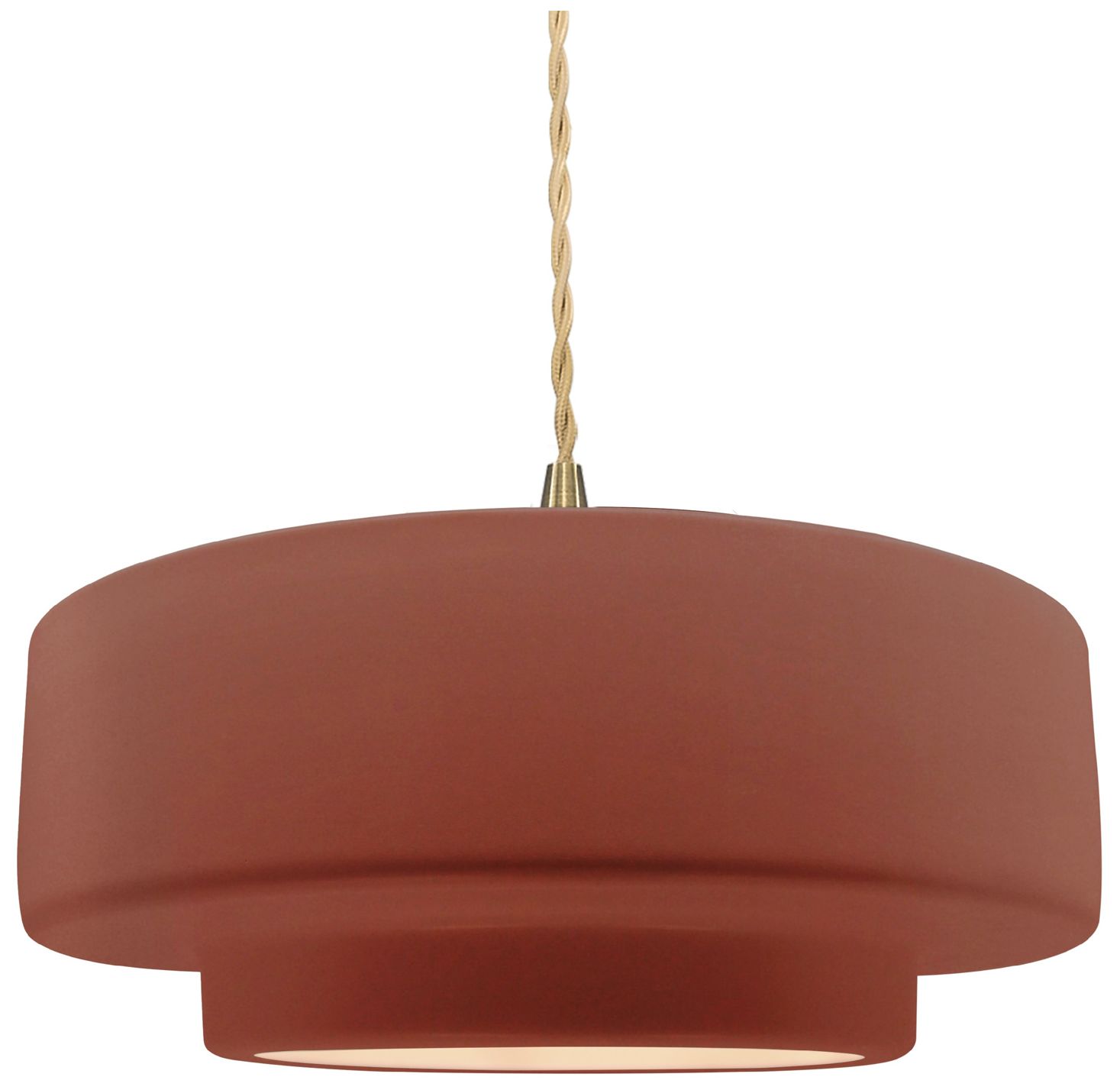 Radiance 14.5"W Clay Frame Brushed Brass Tier Beige Twisted LED Pendan