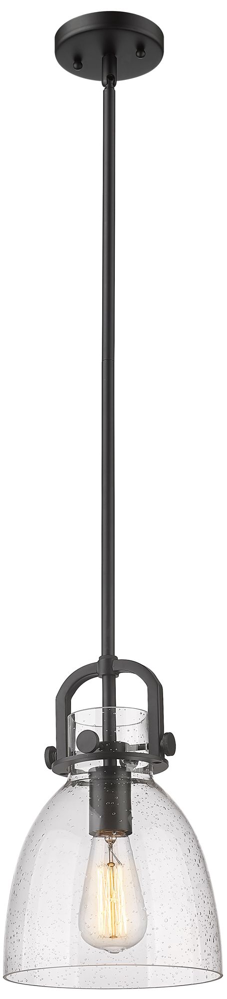 Newton Bell 8" Wide Stem Hung Matte Black Pendant With Seedy Shade