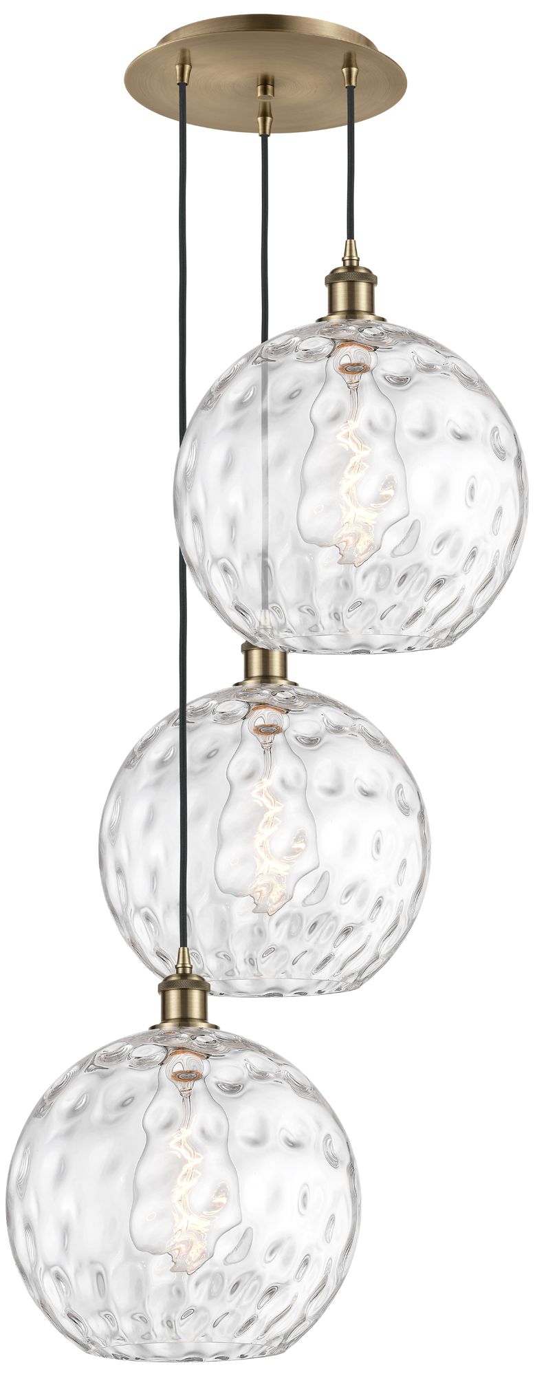 Athens 3-Light 19" Antique Brass Multi-Pendant With Clear Water Glass