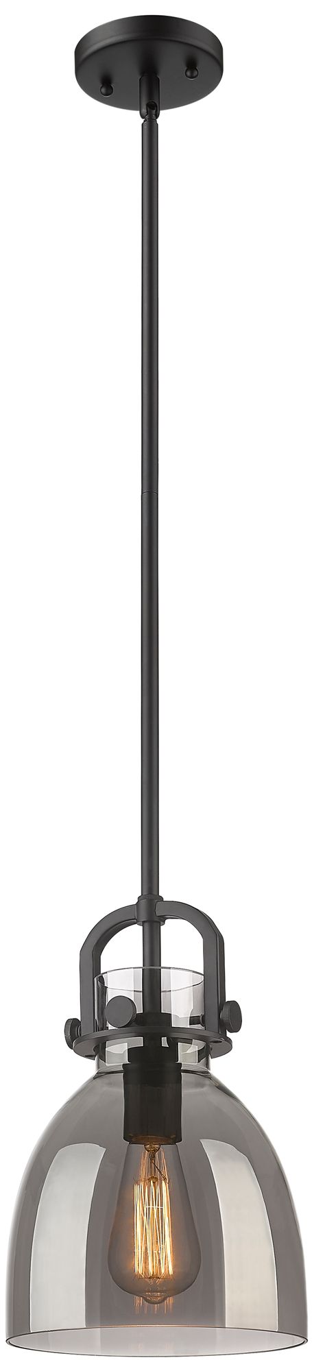 Newton Bell 8" Wide Stem Hung Matte Black Pendant With Smoke Shade