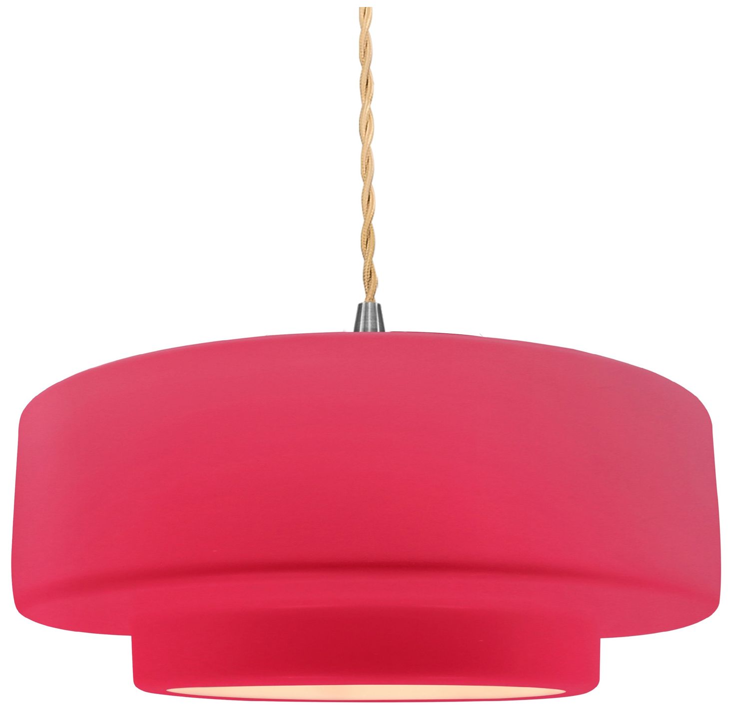 Radiance 14.5"W Cerise Frame Brushed Nickel Tier Beige Twisted LED Pen