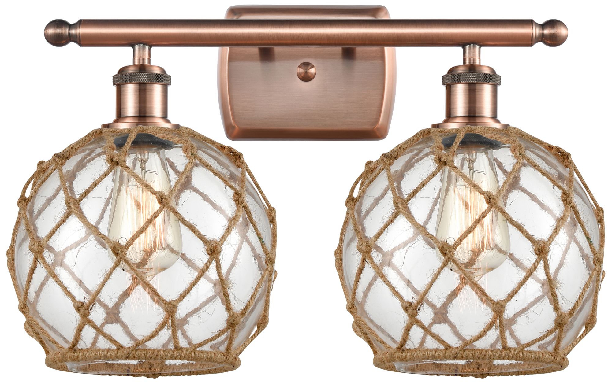 Farmhouse Rope 16"W 2 Light Copper Bath Light w/ Clear and Brown Shade