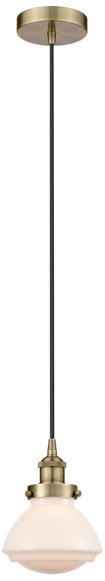 Olean 7" Antique Brass Mini Pendant w/ Matte White Shade