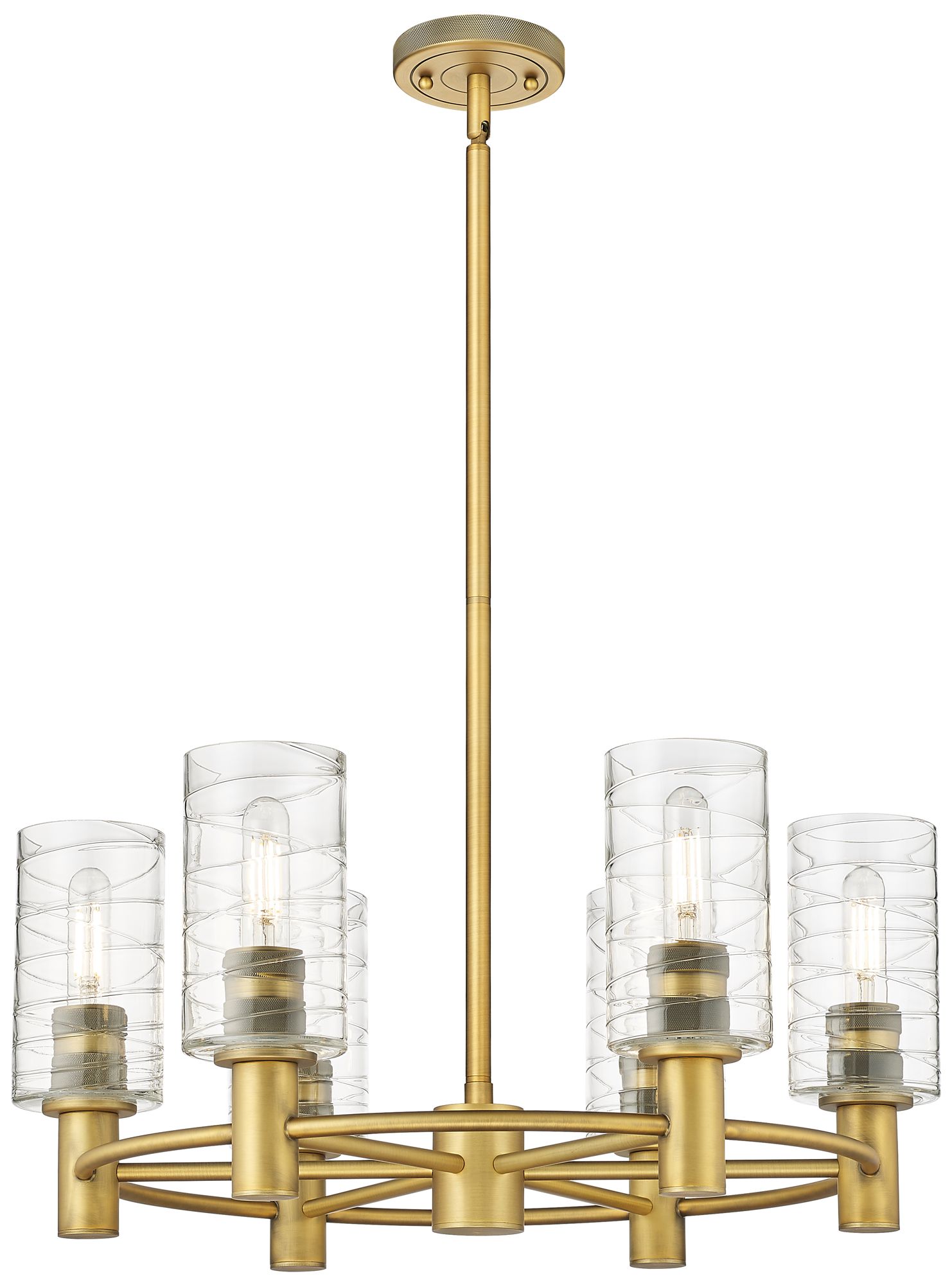Crown Point 24"W 6 Light Stem Hung Brushed Brass Chandelier w/ Swirl S