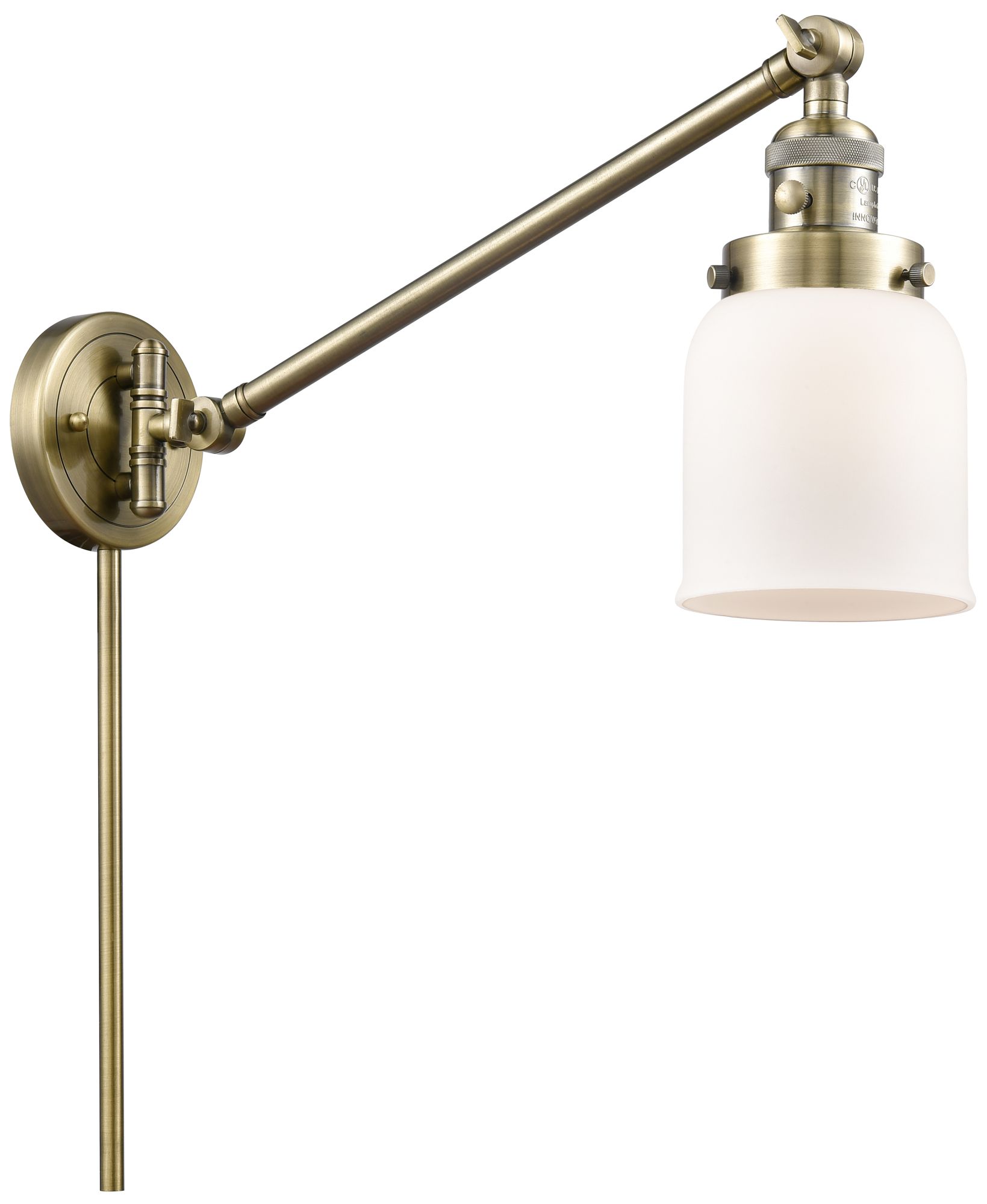 Franklin Restoration Bell 8" Antique Brass Swing Arm w/ Matte White Sh