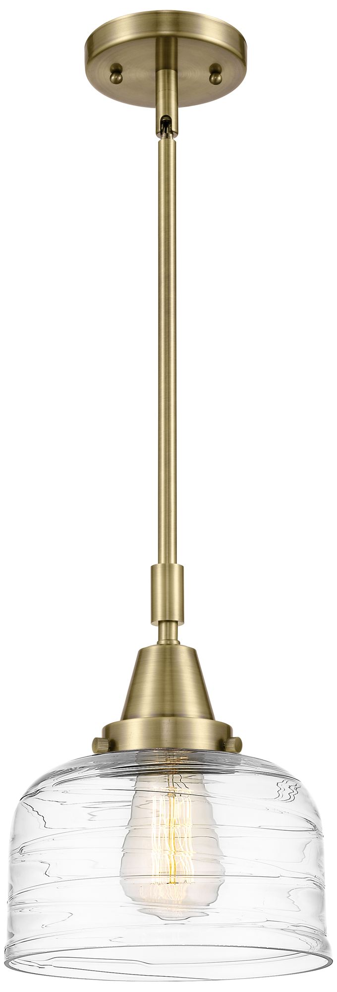 Caden Bell 8" Wide Antique Brass Stem Hung Mini Pendant w/ Deco Swirl