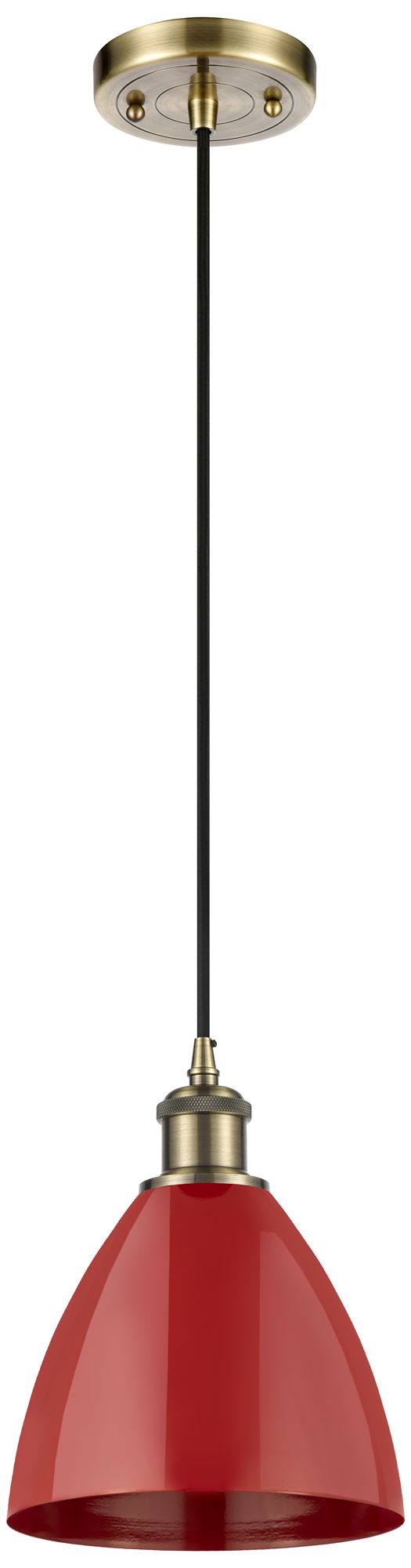 Ballston Plymouth Dome 7.5"W Antique Brass Corded Mini Pendant w/ Red