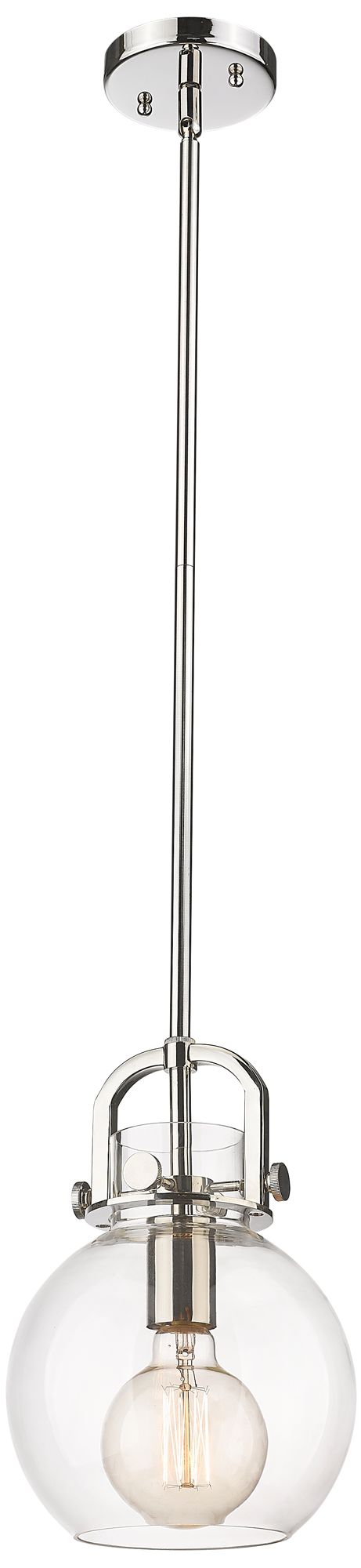Newton Sphere 8" Wide Stem Hung Polished Nickel Pendant With Clear Sha