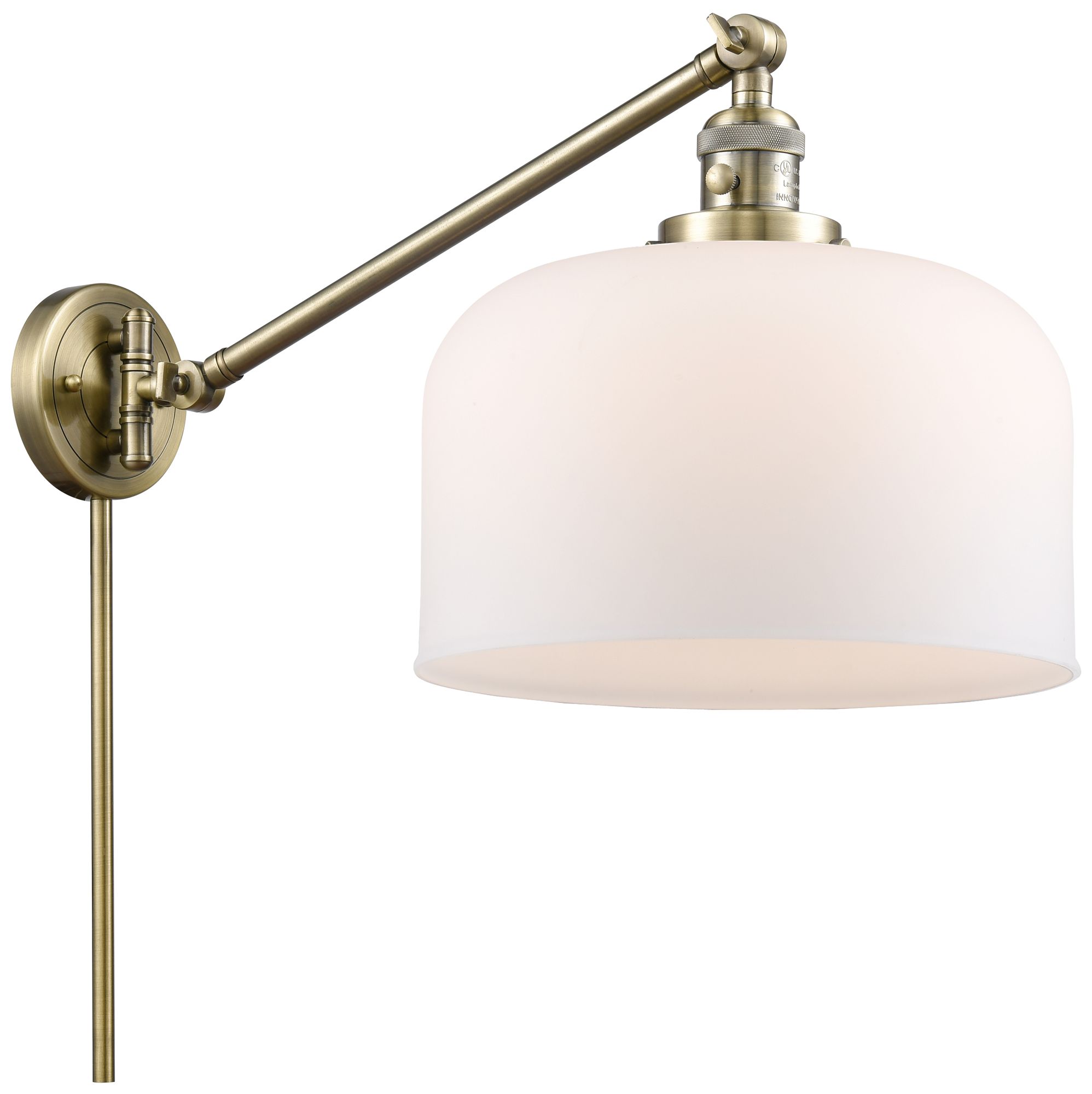 Bell 12" Antique Brass Swing Arm w/ Matte White Shade