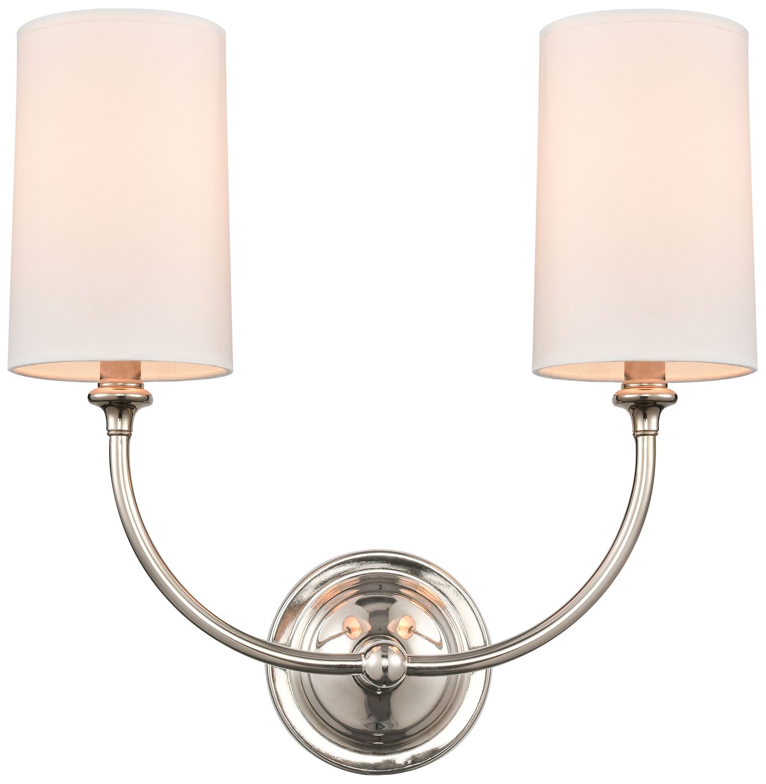 Giselle 15" 2-Light Polished Nickel Sconce w/ Off-White Shade