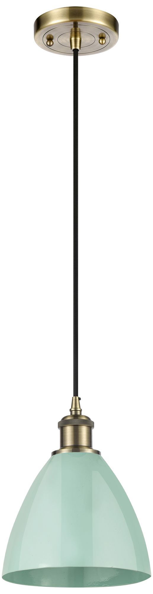 Ballston Plymouth Dome 7.5"W Antique Brass Cord Mini Pendant Seafoam S