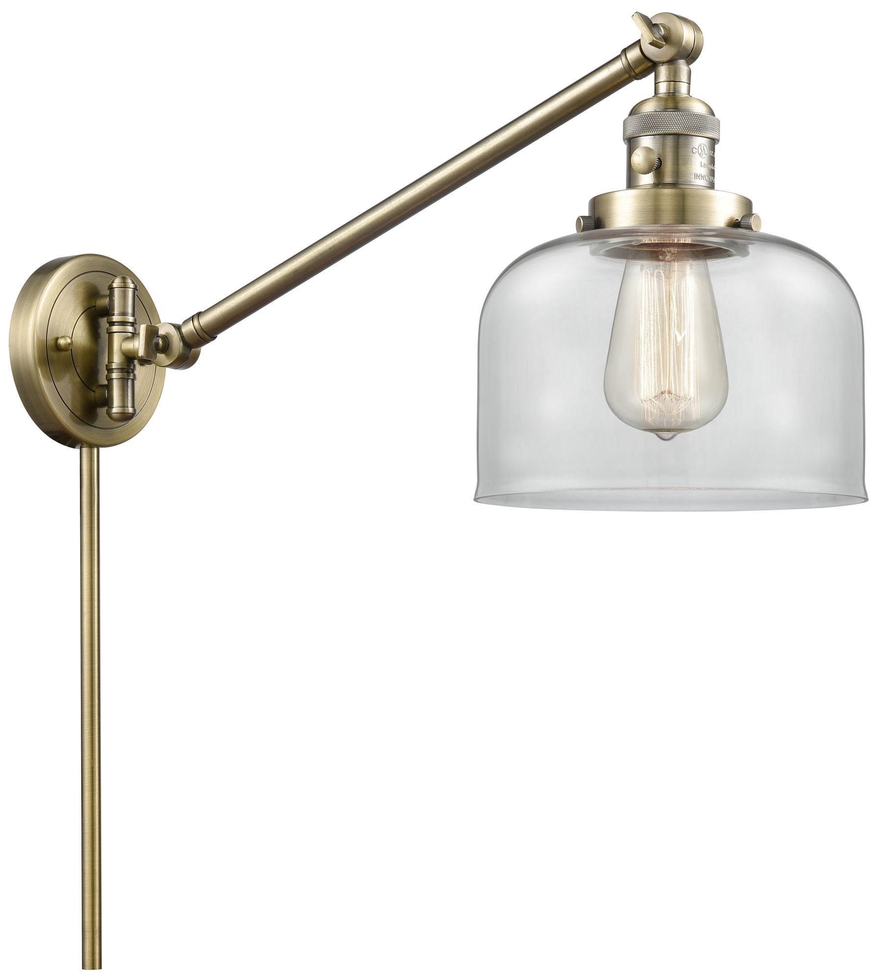 Franklin Restoration Bell 8" Antique Brass Swing Arm w/ Clear Shade