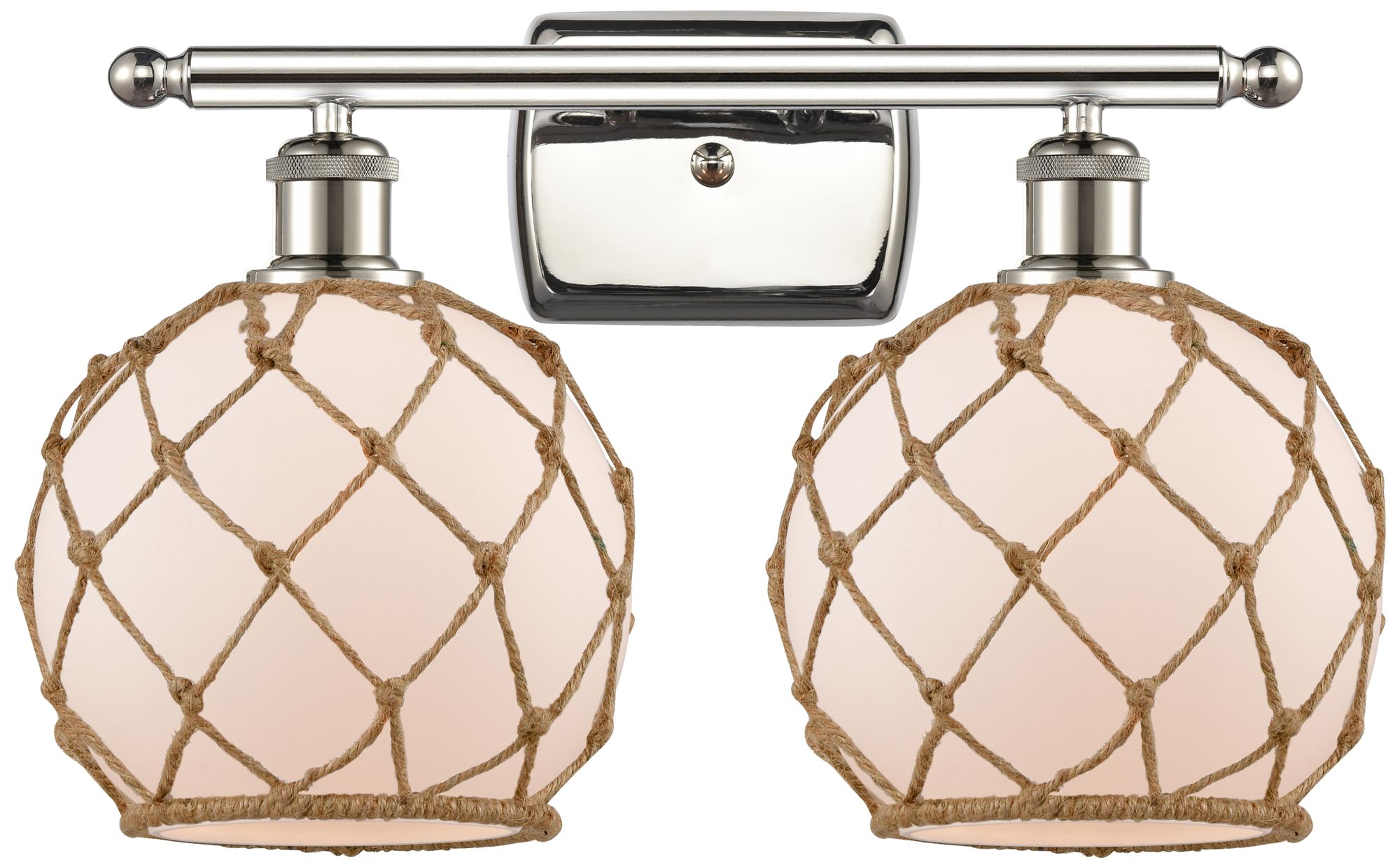 Farmhouse Rope 16"W 2 Lt Polished Nickel Bath Light w/ White & Bro