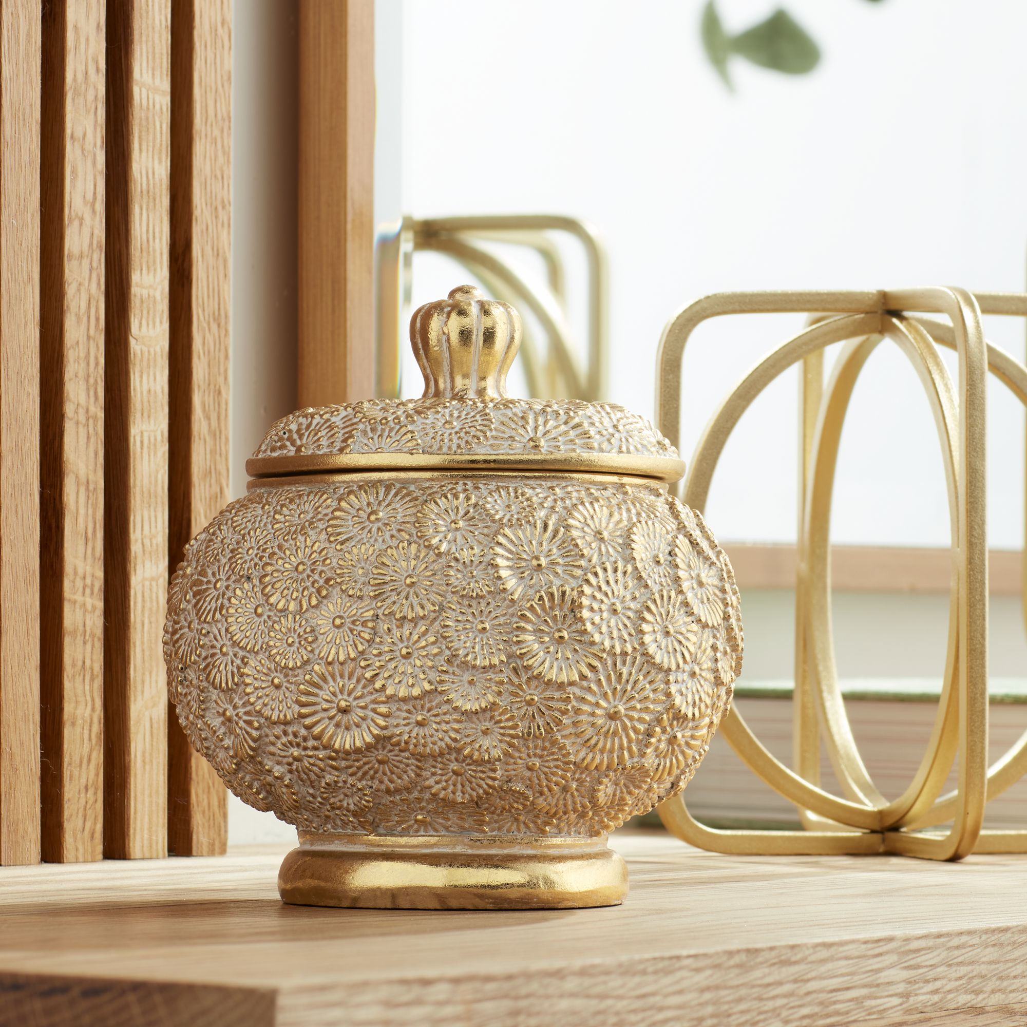 Dahlia Studios Flavia 5 1/2" Wide Matte Gold Floral Decorative Box