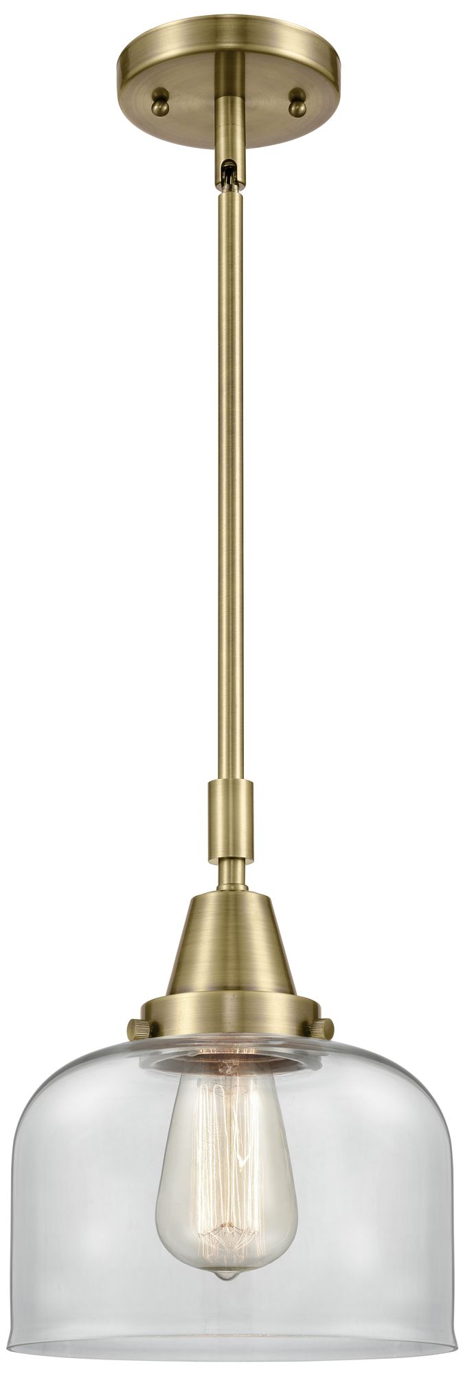 Caden Bell 8" Wide Antique Brass Stem Hung Mini Pendant w/ Clear Shade