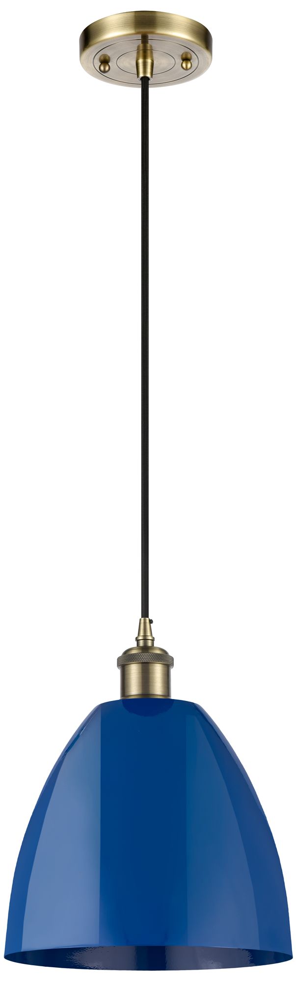 Ballston Plymouth Dome 9"W Antique Brass Corded Mini Pendant w/ Blue S