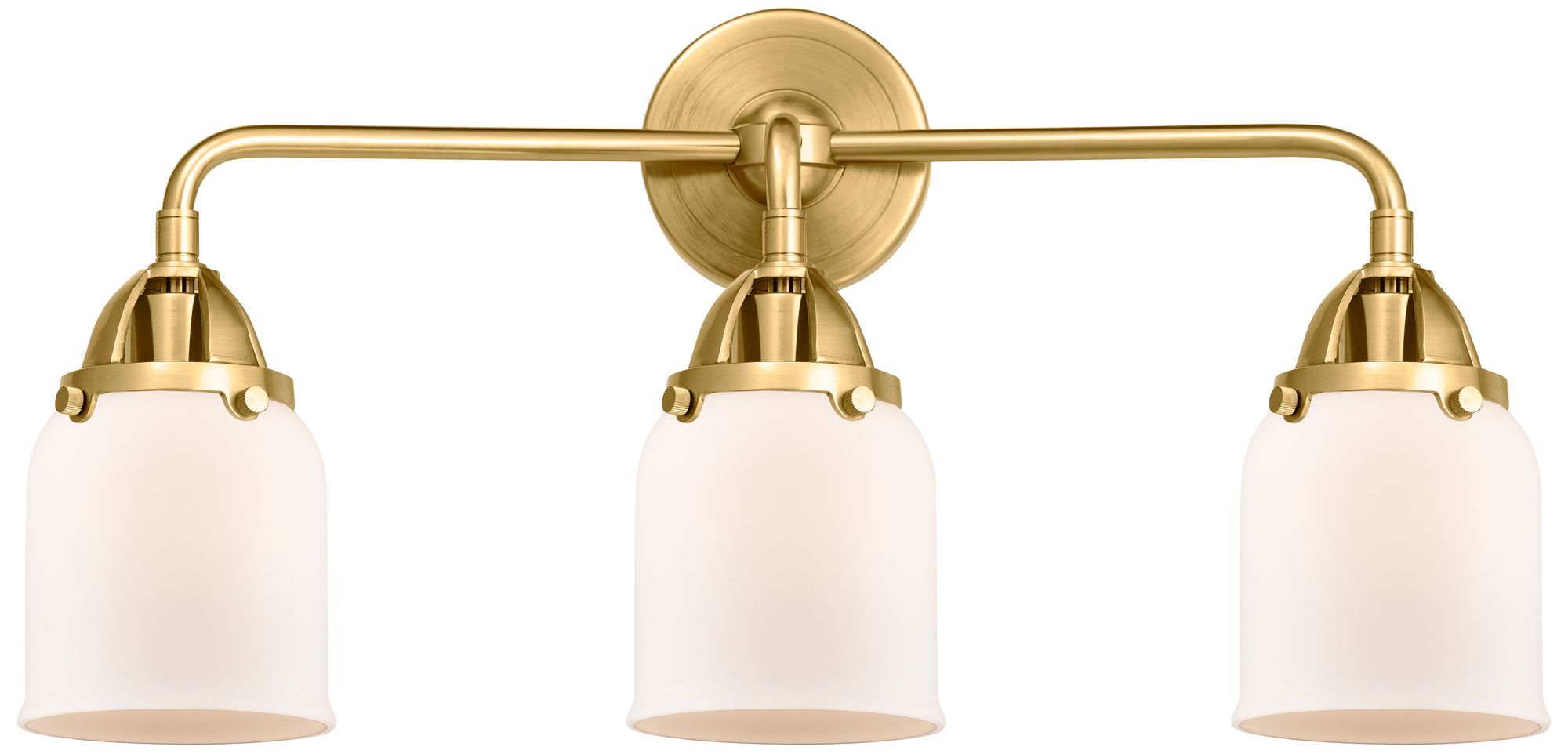 Nouveau 2 Bell 5" 3 Light 23" Bath Light - Satin Gold - Matte Whi