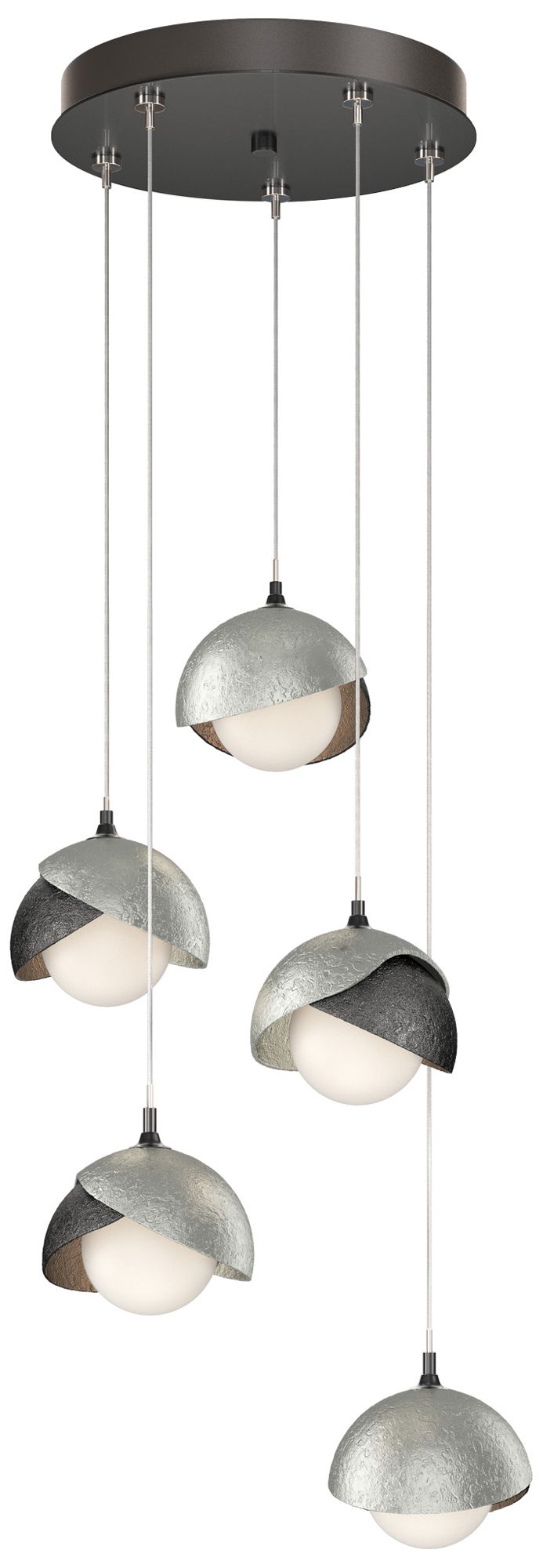 Brooklyn 16"W 5-Light Sterling Accented Ink Long Opal Double Shade Pen
