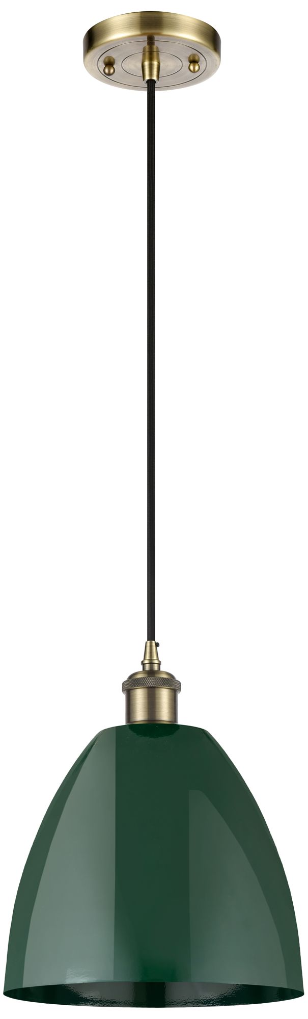 Ballston Plymouth Dome 9"W Antique Brass Corded Mini Pendant w/ Green