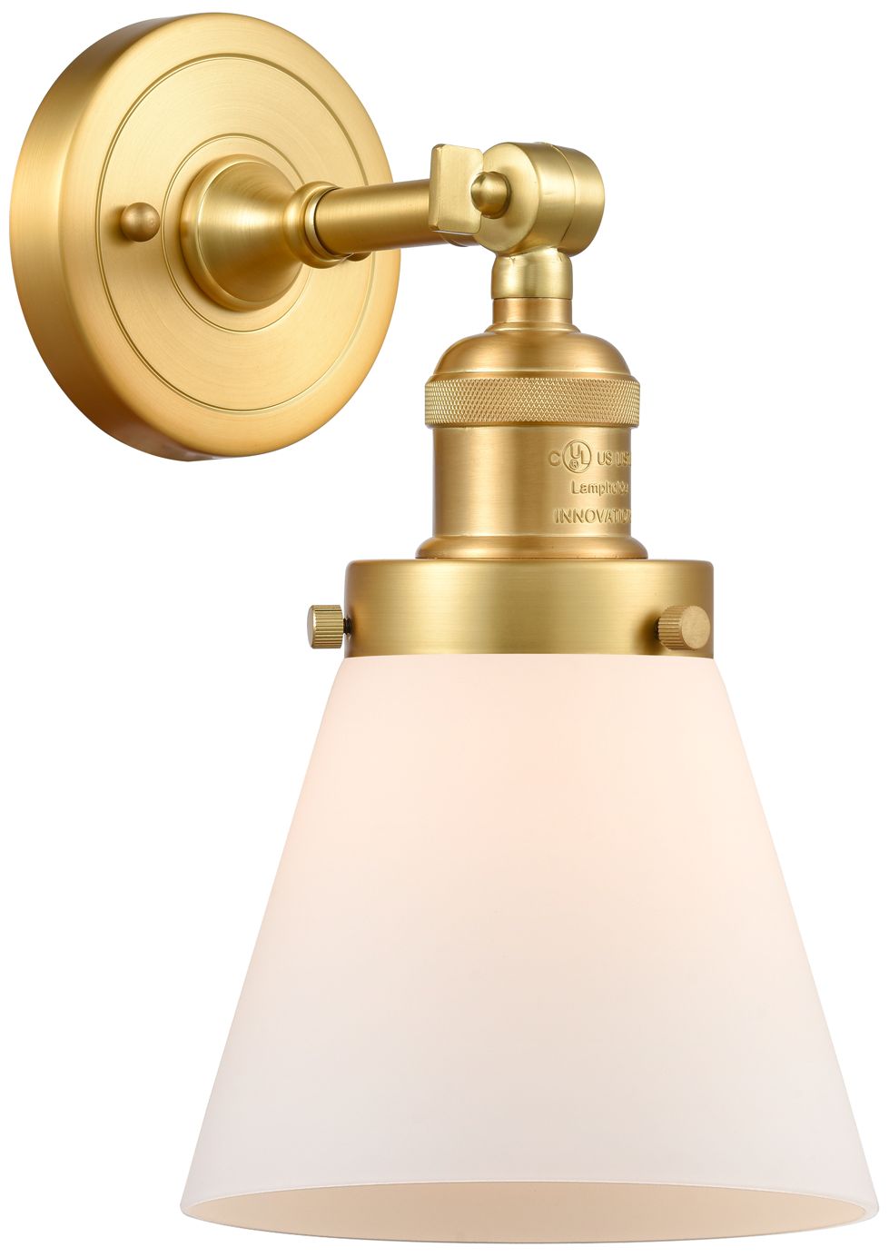 Cone 10"H Satin Gold Adjustable Wall Sconce with White Glass