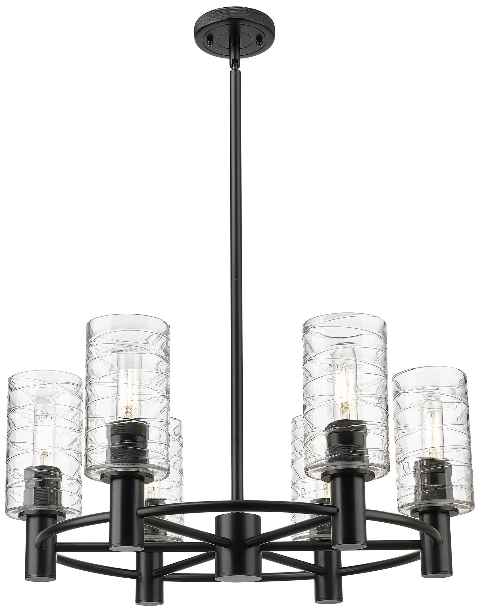 Crown Point 24"W 6 Light Stem Hung Matte Black Chandelier w/ Swirl Sha