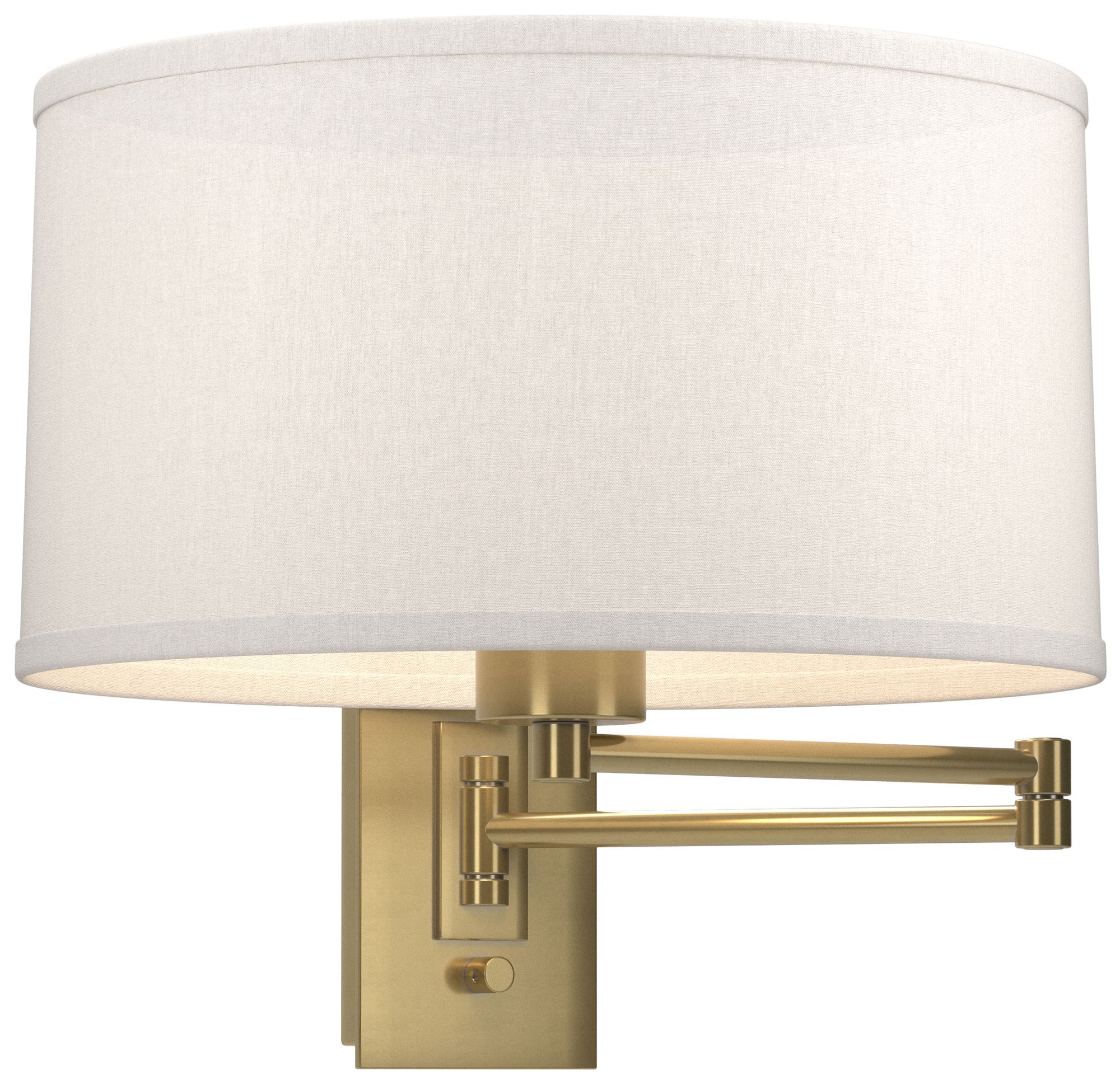 Simple 11" High Modern Brass Swing Arm Sconce With Flax Shade