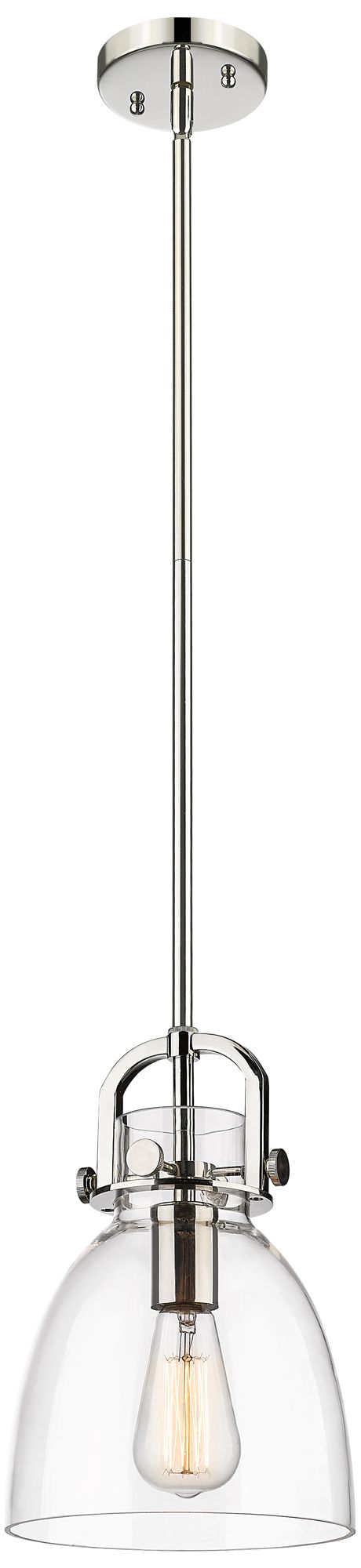 Newton Bell 8" Wide Stem Hung Polished Nickel Pendant With Clear Shade