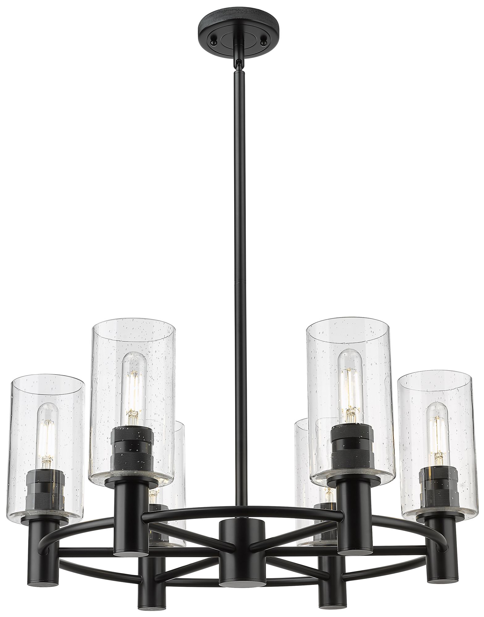 Crown Point 24"W 6 Light Stem Hung Matte Black Chandelier w/ Seedy Sha