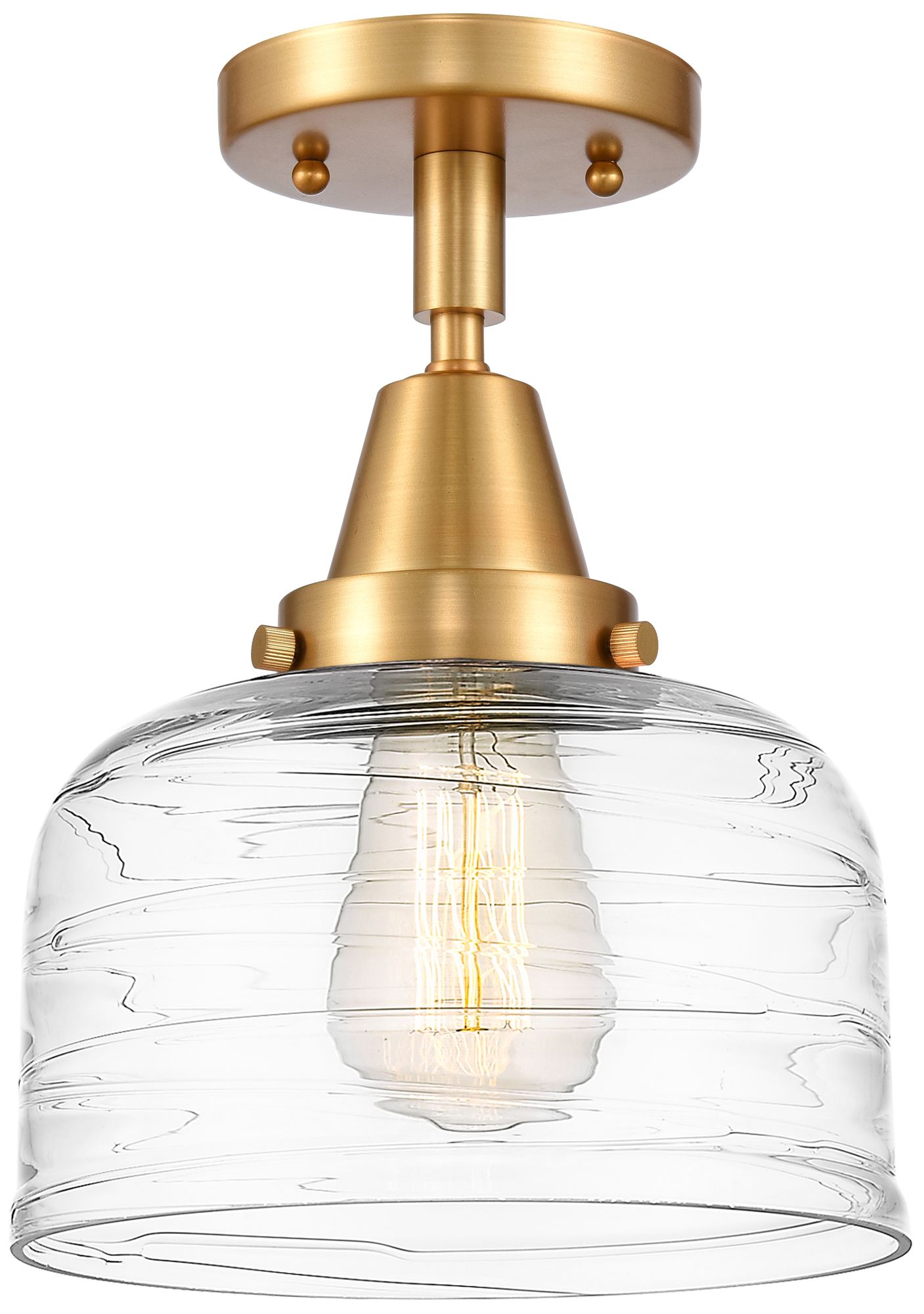 Caden Bell 8" LED Flush Mount - Satin Gold - Clear Deco Swirl Shade
