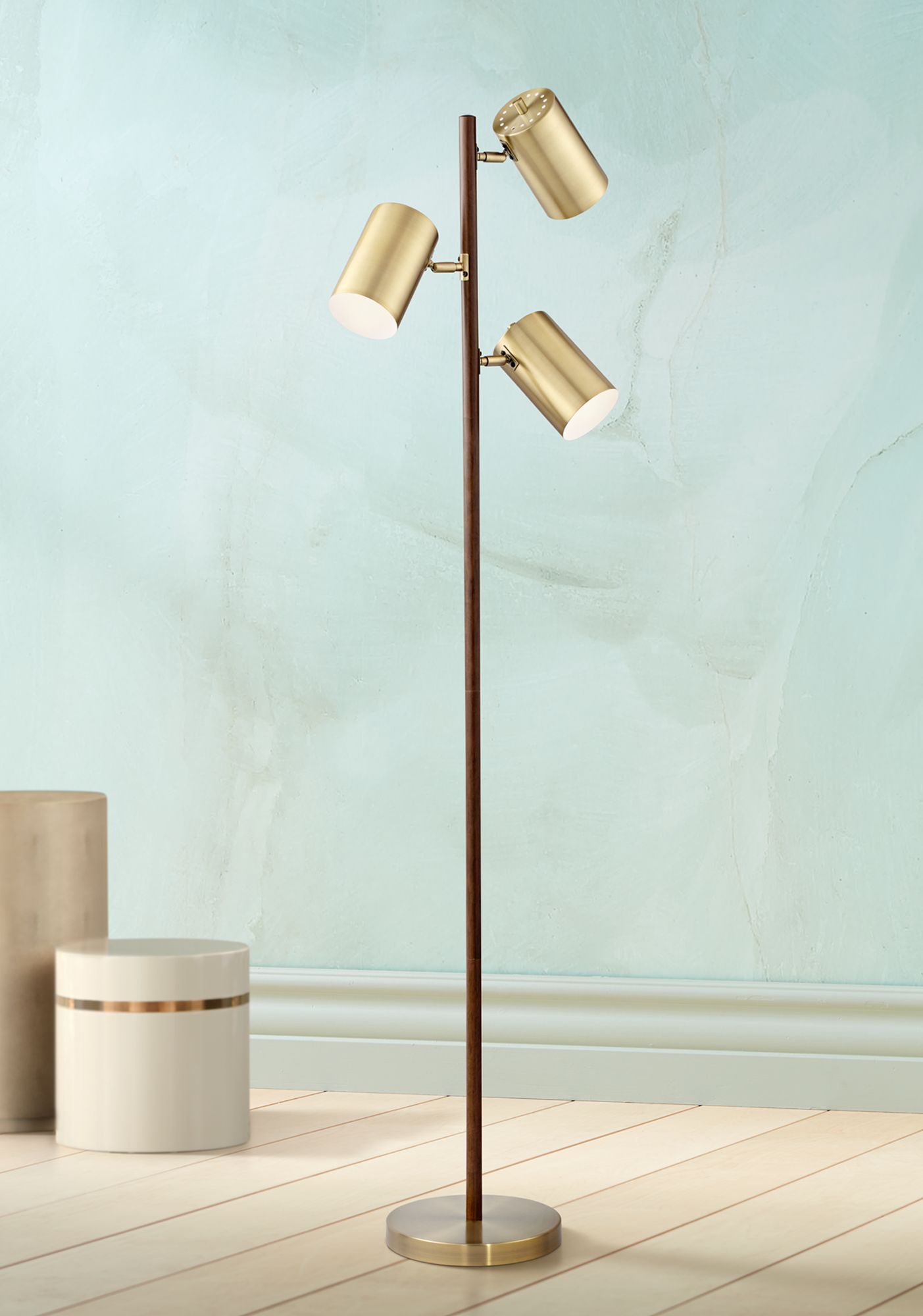 360 Lighting Donatello 63 1/2" Walnut and Brass 3-Light Floor Lamp
