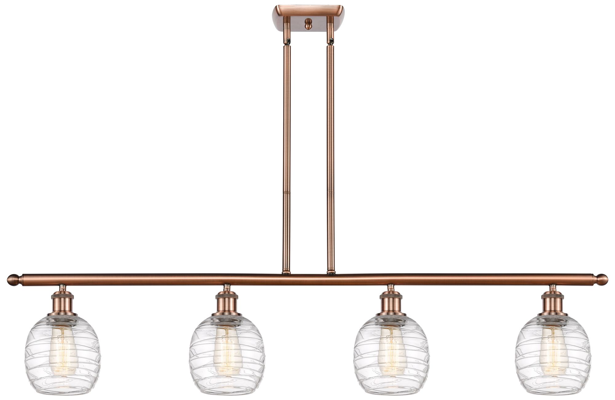 Belfast 4 Light 48" LED Island Light - Antique Copper - Deco Swirl Sh