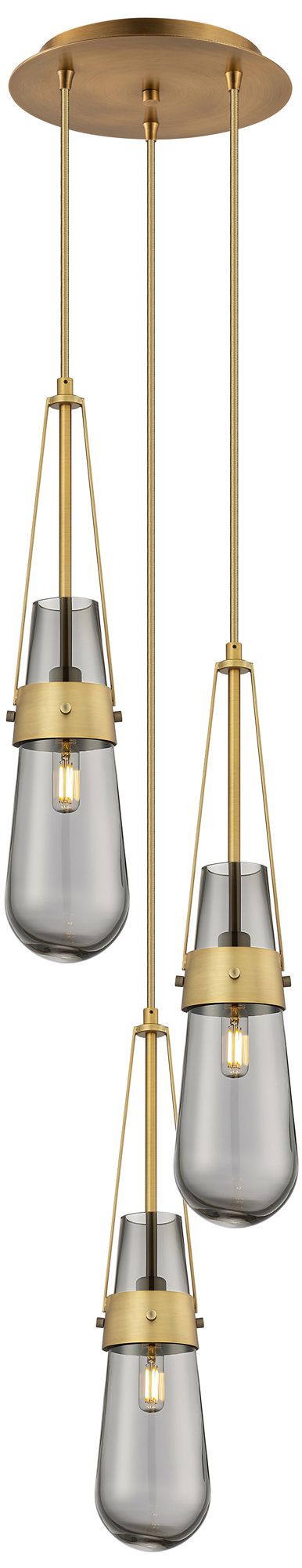 Newton Sphere 39.75"W 3 Light Brushed Brass Linear Pendant w/ Seedy Sh