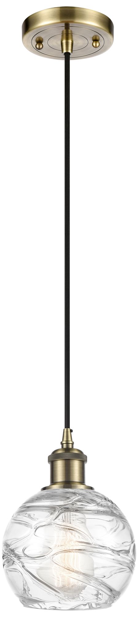 Ballston Athens 6" Antique Brass Corded Mini Pendant w/ Deco Swirl Sha