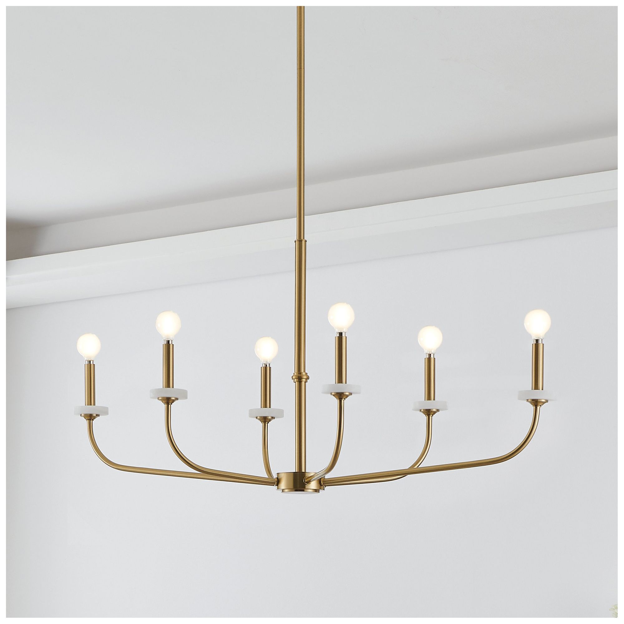 Thesis Leah 42" 6 Light Brushed Gold and White Onyx Chandelier