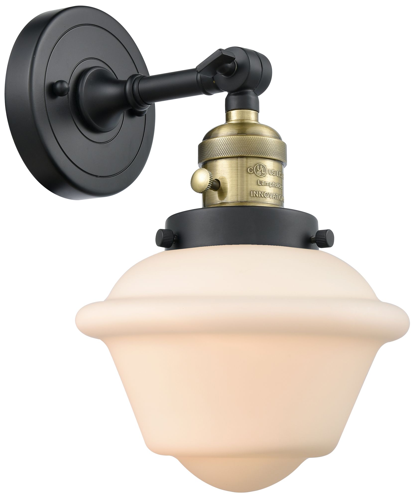 Oxford 8" Sconce LED - Black Brass Finish - Matte White Shade