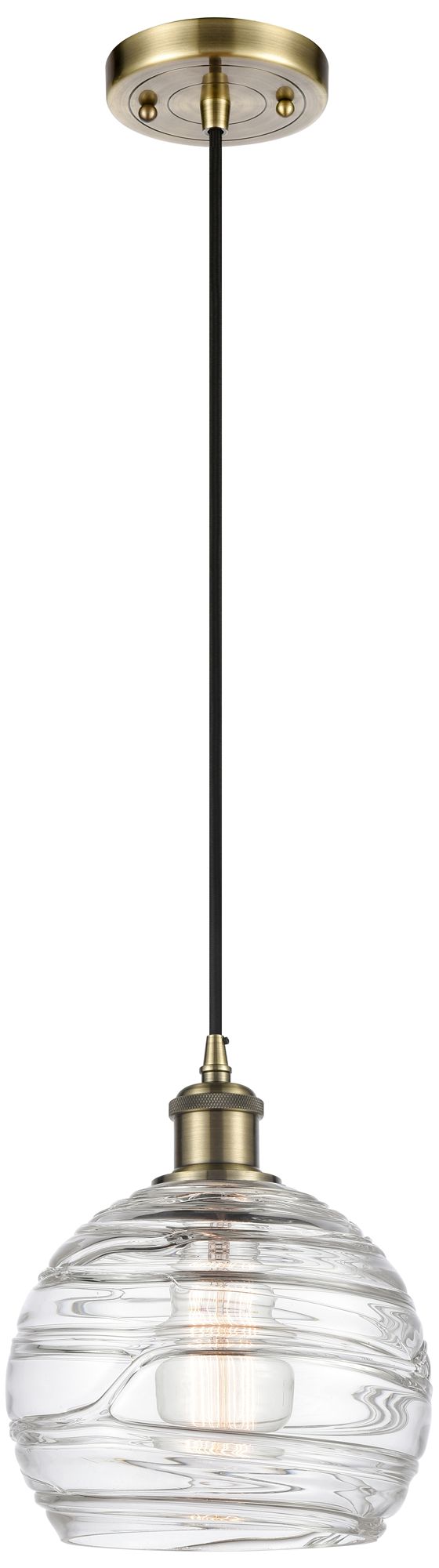 Ballston Athens 8" Antique Brass Corded Mini Pendant w/ Deco Swirl Sha