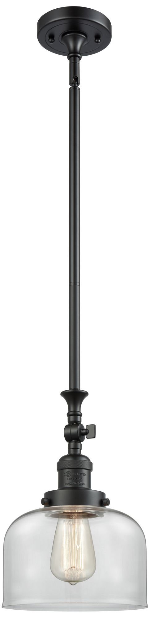 Bell 8" Wide Matte Black Stem Hung Tiltable Mini Pendant w/ Clear Shad