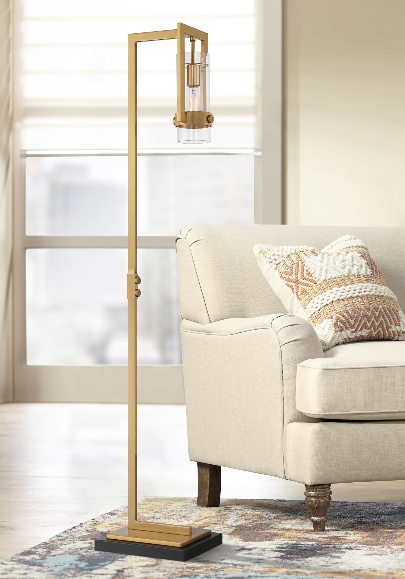 Possini Euro Denali 61" Warm Gold Floor Lamp with Glass Shade